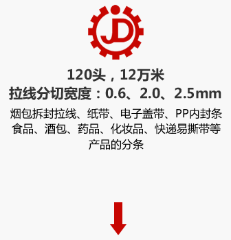 LFT120頭拉線(xiàn)分條機(jī),主要用來(lái)生產(chǎn)1萬(wàn)米煙包、食品、酒包、藥品、化妝品、磁帶、快遞袋等產(chǎn)品的包裝盒或盒袋的拆封拉線(xiàn)。